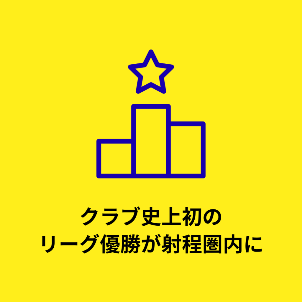 その結果、私たちは現在リーグ2位という場所に立ち、 欧州最高峰の舞台(UEFAチャンピオンズリーグ・ヨーロッパリーグ・カンファレンスリーグ)へ手をかけようとしています。もし出場権を勝ち取ることができれば、日本企業が運営するクラブとして史上初となります。
